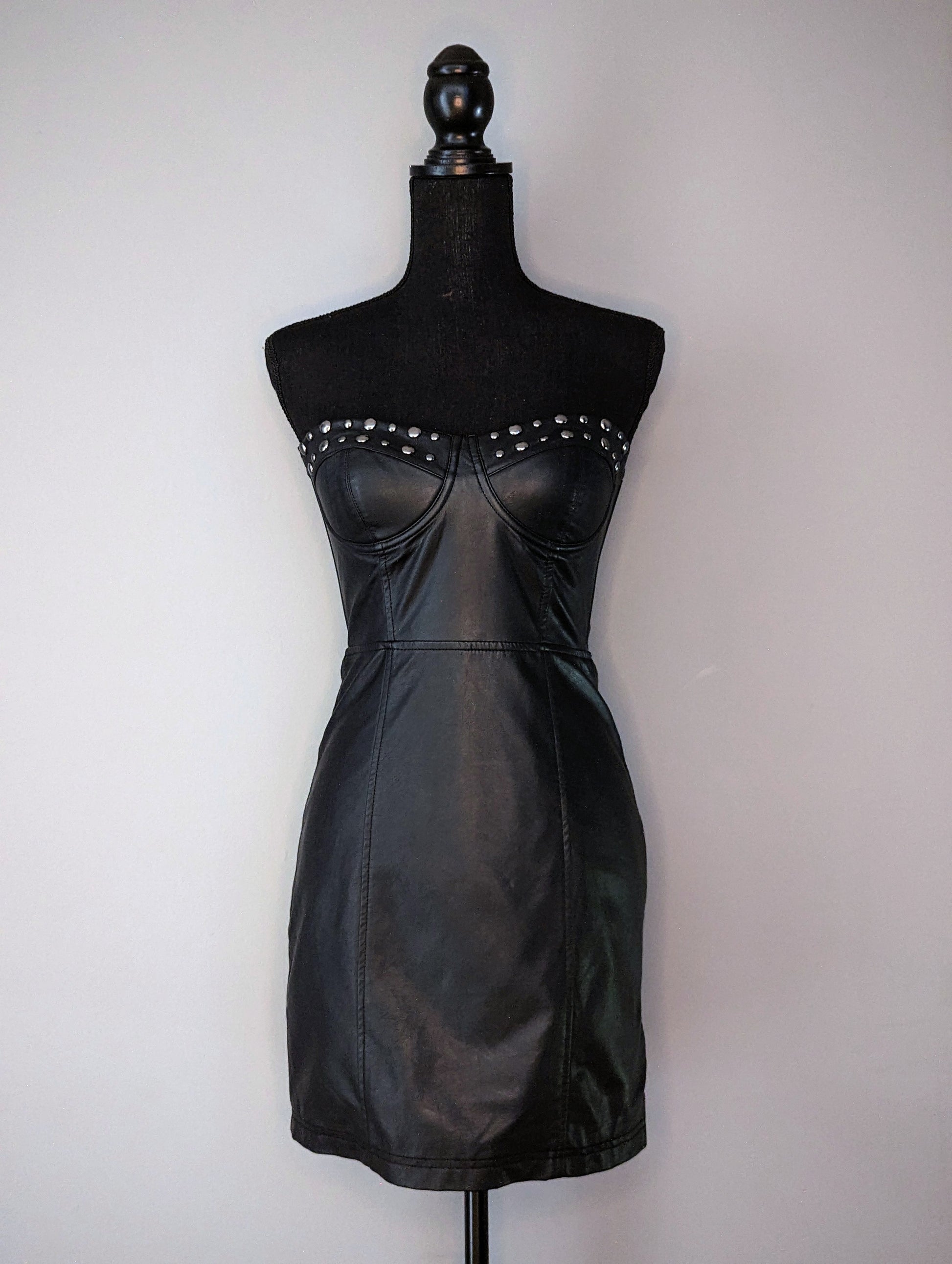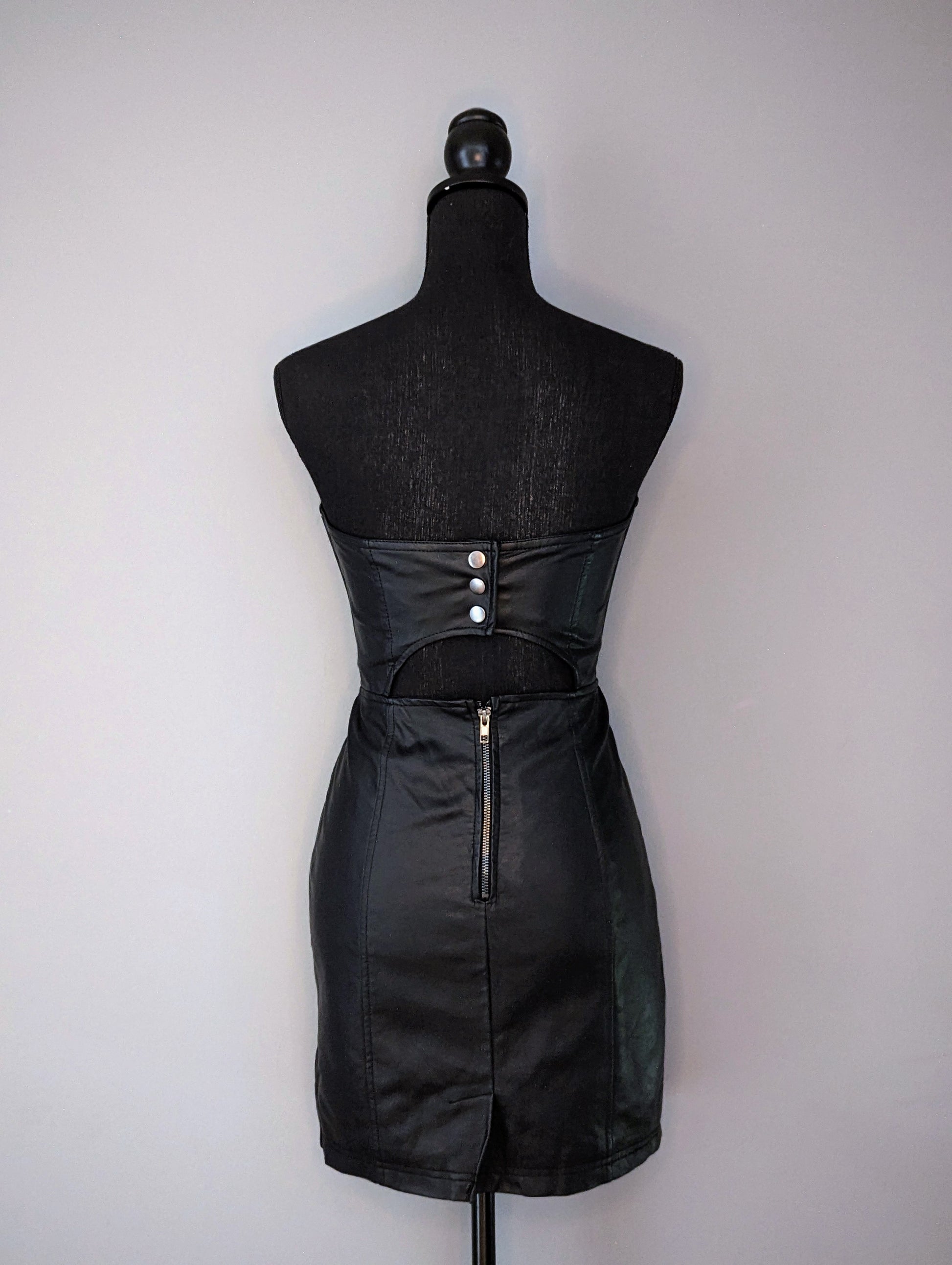 Style: Faux Leather Strapless Tube Dress
