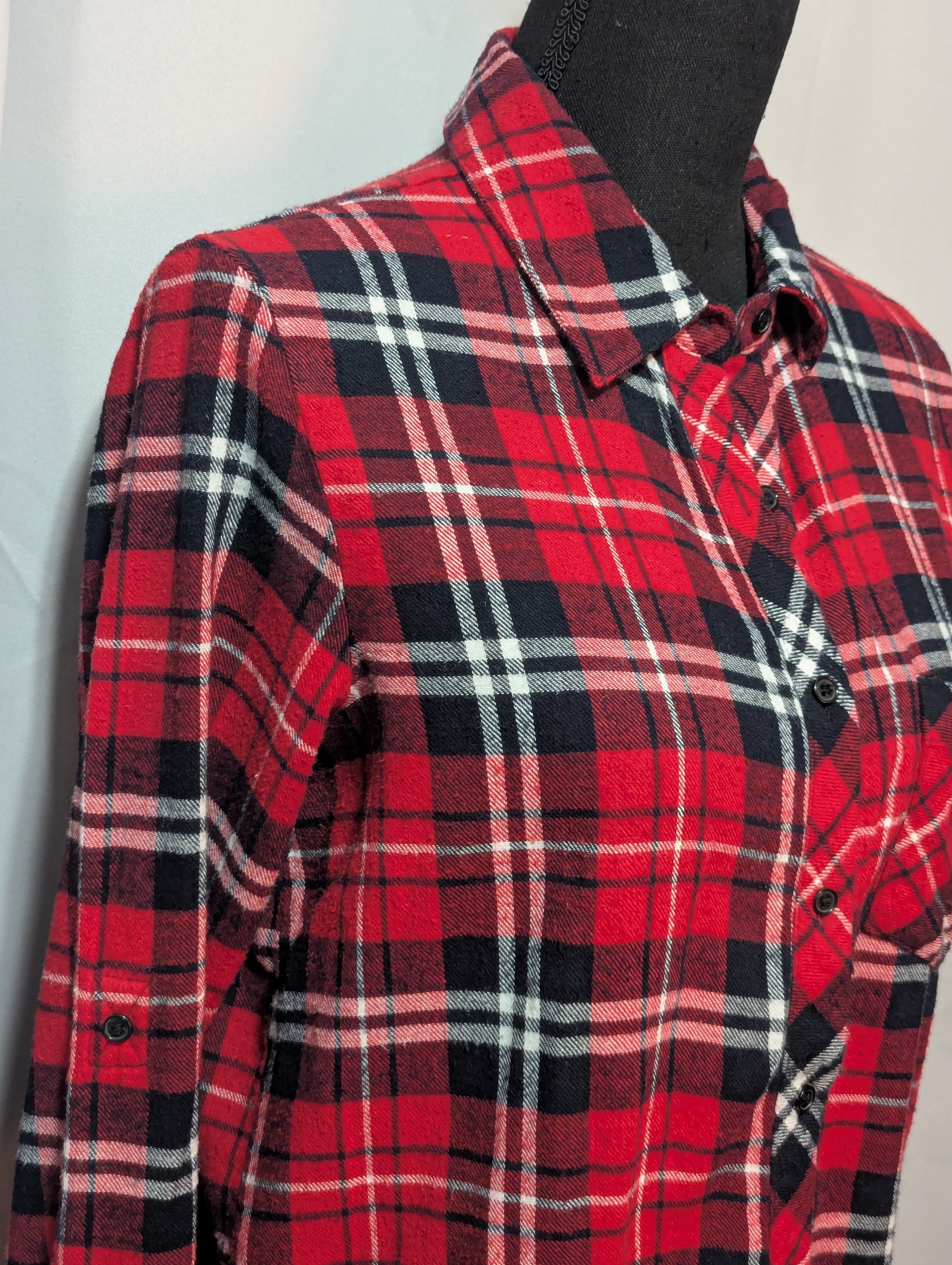 Awesome Features: Button half way up the sleeve to fold sleeve up. Chest pocket.