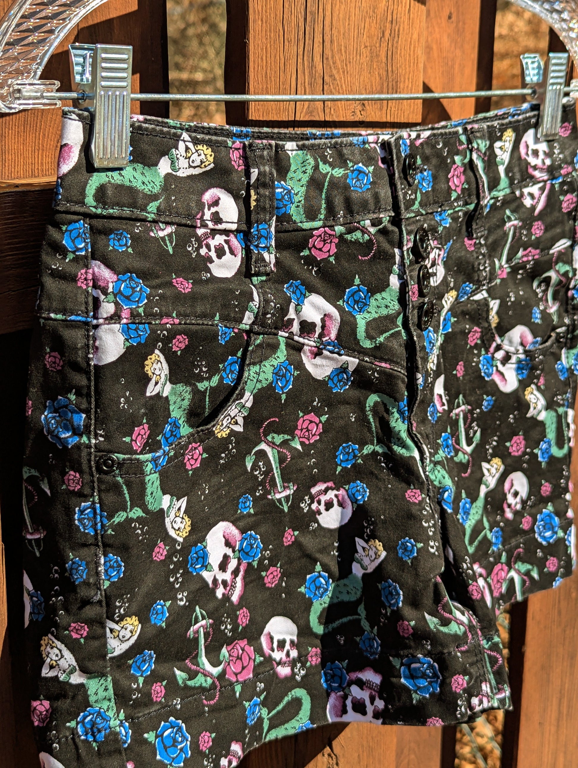 Awesome Features: Has pockets! 4 button closure. Nautical skull pattern.