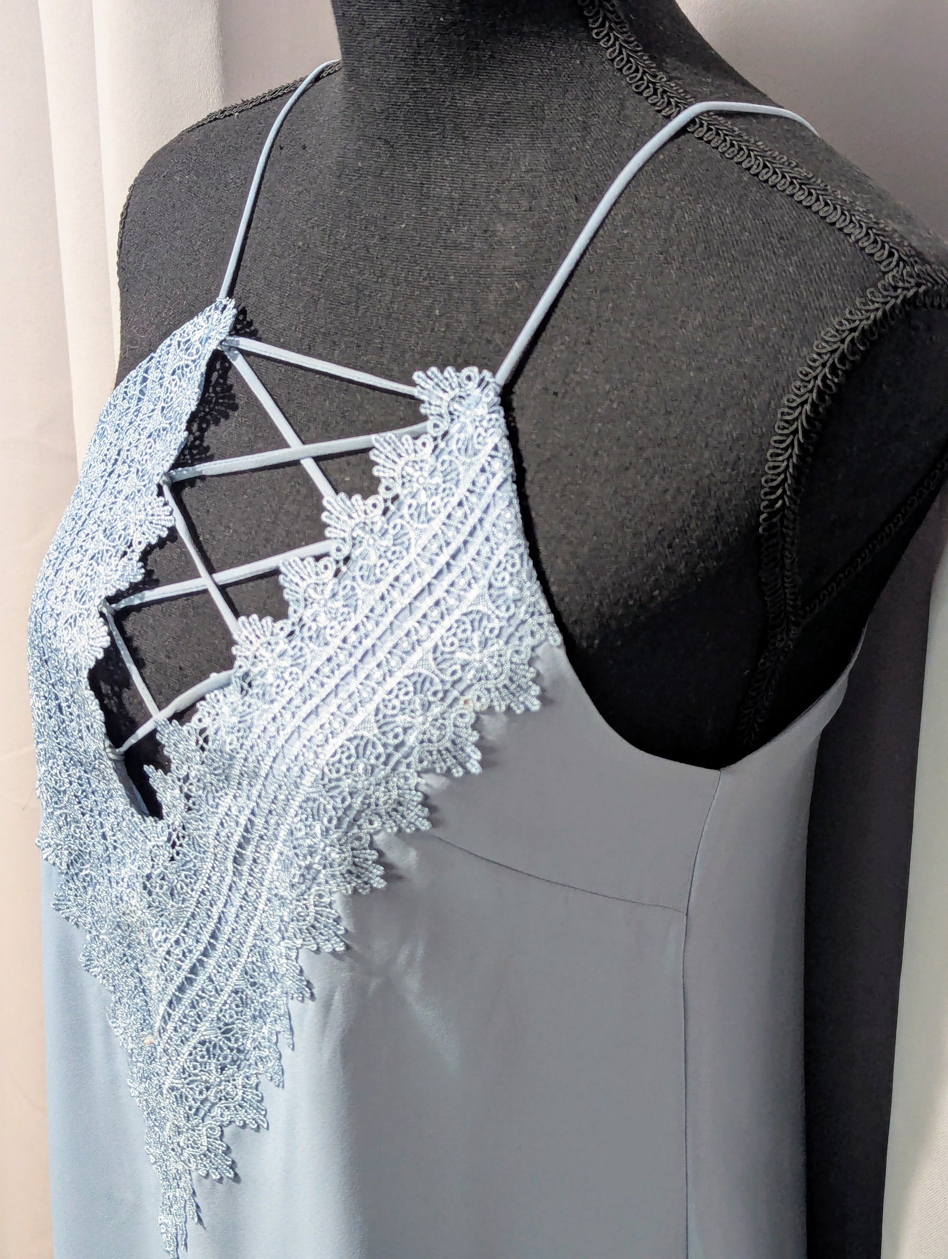 Awesome Features: Spaghetti straps. Lace & strappy front. Pull over.